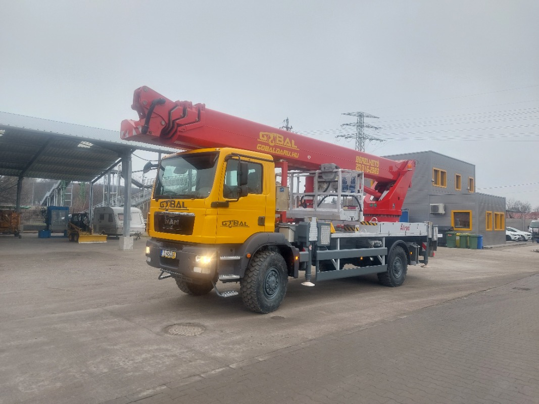 Terepes, összkerekes maghajtással 23m-45m munkamagasságig, 28,7m oldalkinyúlással tudunk megrendelőink rendelkezésére állni a terepviszonyok miatt nehezem megközelíthető területeken is!